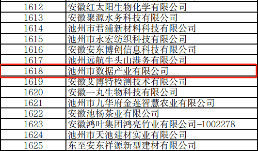 近日安徽省工業和信息化廳發布了2024年度專精特新中小企業公示名單集團所屬池州市數據產業有限公司榮獲2024年度安徽省“專精特新”中小企業。
